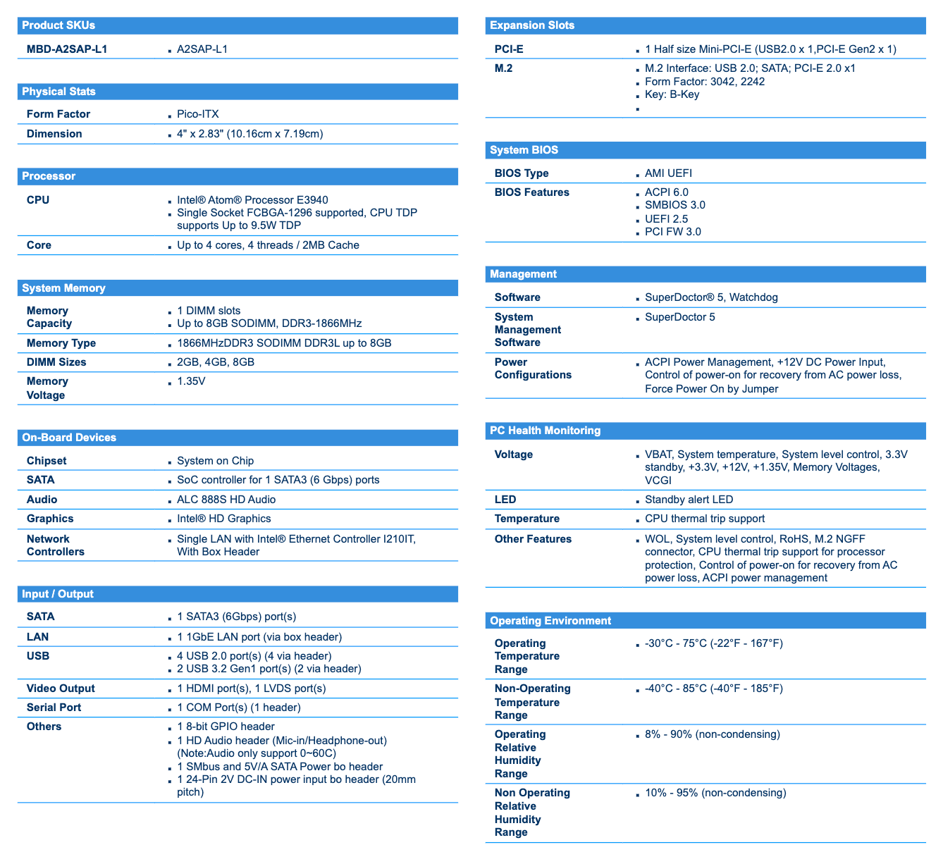 - Intel® Atom processor E3940 (9.5W, 4C)