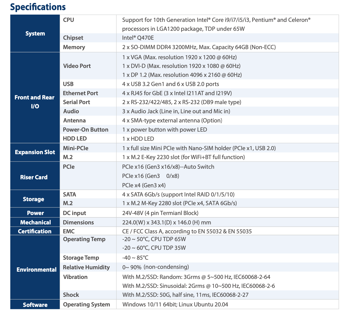 - 2 x SO-DIMM DDR4 up to 64GB
