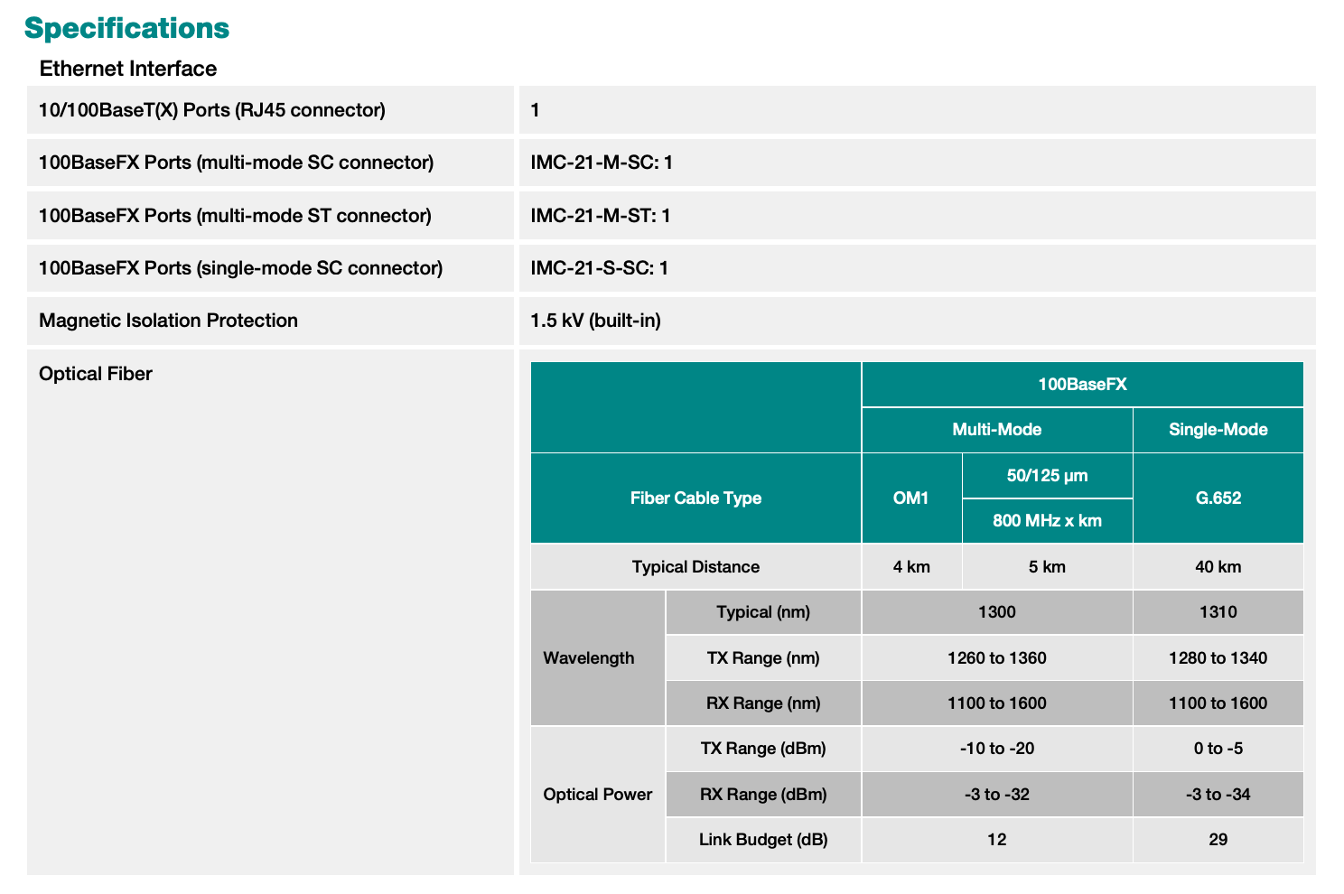The IMC-21 industrial media converters are entry-level 10/100BaseT(X)-to-100BaseFX media converters designed to provide reliable and stable operation in harsh industrial environments. The converters are a cost-effective solution that run on either a 12 or 48 VDC power input and can operate reliably in temperatures ranging from -10 to 60°C. The rugged hardware design ensures that your Ethernet equipment can withstand demanding industrial conditions. The IMC-21 converters are easy to mount on a DIN rail or in distribution boxes.