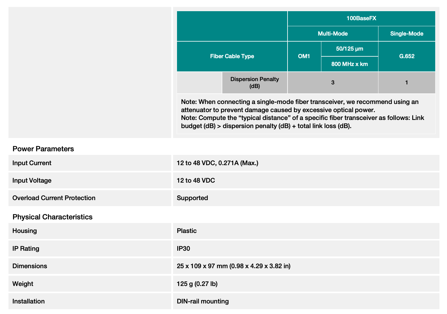 Entry-level industrial 10/100BaseT(X)-to-100BaseFX media converters