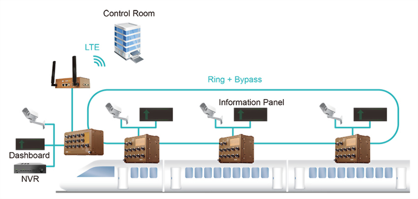3 x 100/1000Base-T, M12 8 Pin A/X-Code Female, Auto Negotiation, 1 port (Port 8) IEEE802.3af/at PoE, 2 ports (Port 9/10) link bypass