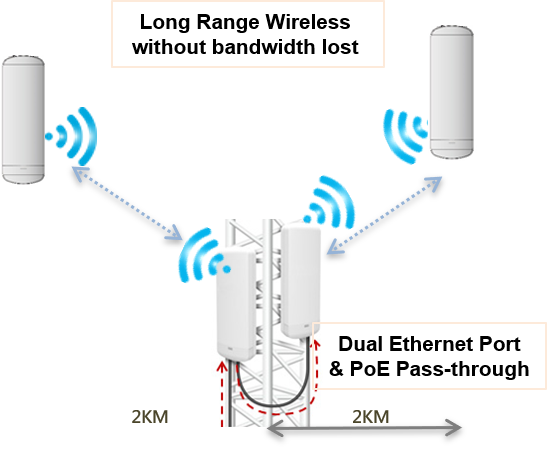 ・Supports AP, Client, WDS AP/Client, multiple SSID for Point to Point/Multiple Points connectivity